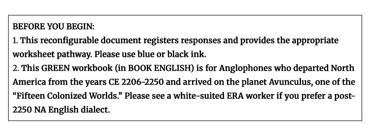 A warm welcome to Earth’s refugees!We are the Earth Refugees Authority (ERA), a government authority whose mandate is to provide food and water, temporary shelter, medical care, and security for refugees from Earth to this world of Avunculus.At the time you left Earth, Avunculus was a nascent colony, one of 15. As your intake counselor likely informed you, 512 years have passed between the time you entered the copula on Earth and disembarked on Avunculus.Effectively, your civilization is long dead to you. If you have not already been assigned a grief counselor, one will be appointed to you during your stay. We are experiencing a shortage of trained personnel in this area; the current wait time is 301 days.